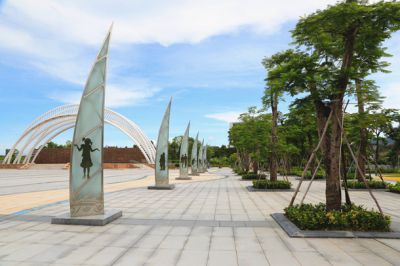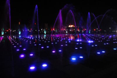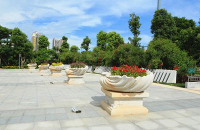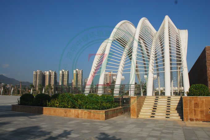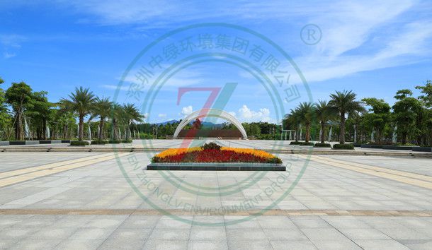 廣場地基處理、廣場鋪裝、廣場綠化和公園小品建筑、花壇、園路、噴泉、照明、園林設施及設備安裝、給水、排水等。