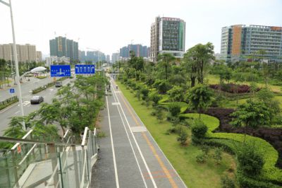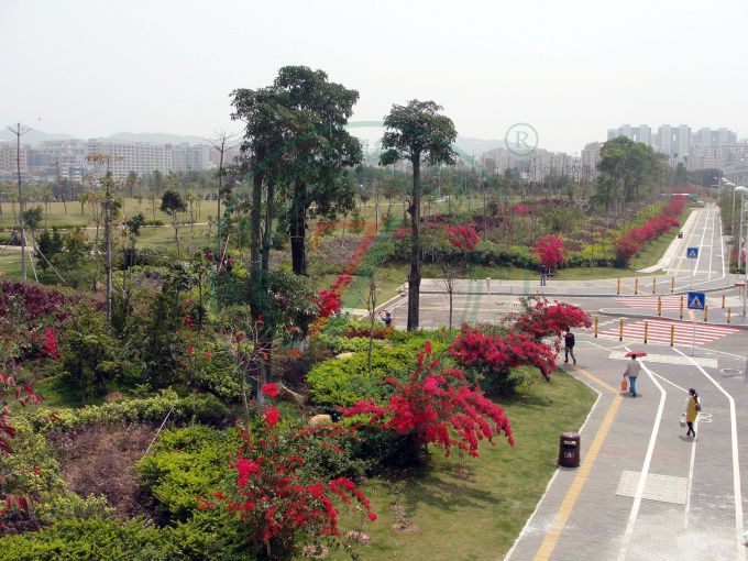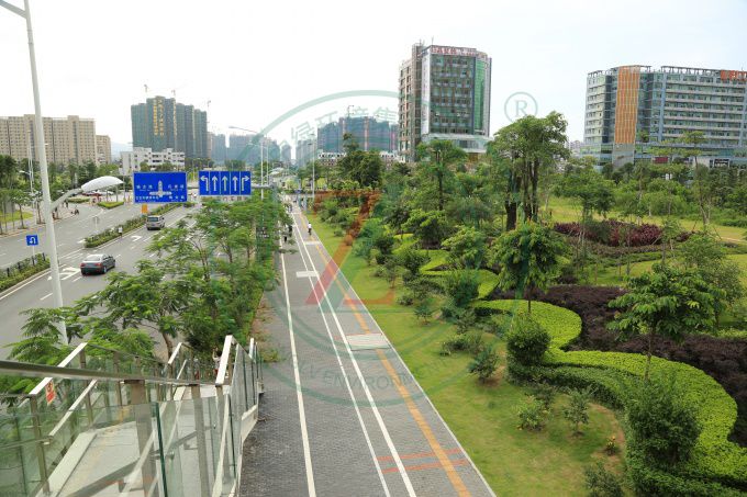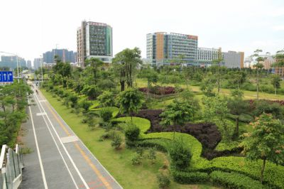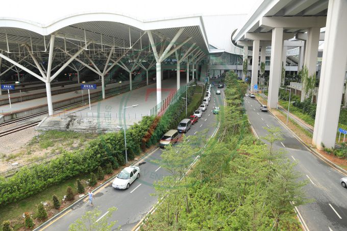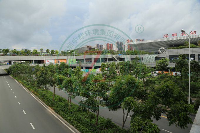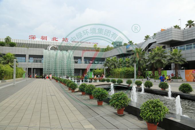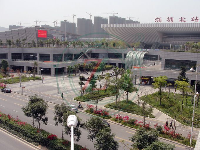 亞洲最大的火車站,景觀規模宏大,綠化具備中國特質,品種多樣,層次豐富,色彩熱烈。中國版圖分為東、西兩部:東、西廣場分別代表中國東部和西部,以此表示深圳北站既是深圳的火車站,也是中國的火車站,同時表達具有鮮明“移民城市”特征的深圳,將以更開放的姿態歡迎新加入深圳建設的朋友。