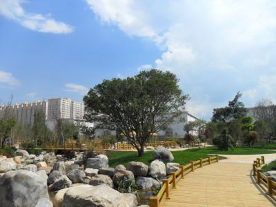 本項目位于云南省昆明市北市區(qū)銀河片,是紅云紅河集團易地改遷項目,主要施工范圍包括主入口B區(qū)與廠區(qū)C區(qū)范圍,主要涵蓋園林建筑與景觀小品、小溪駁岸、園林噴灌及園林道路面層裝飾、環(huán)境照明設施設備、土方回填、苗木移植與綠化管養(yǎng)等。
