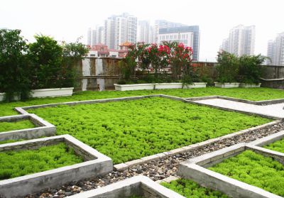 本項目采用立體綠化新技術——自動調濕式綠化技術,該技術獲得“世界立體綠化創新技術金獎”,其核心是讓植物自己對用水量進行管理,植物不回因為缺水影響生長,也不會因為澆水過多而澇死,具備自動調濕、雨水收集、防水防滲等一系列功能,節水率高達85%。屋頂四周采用自動調濕集成種植箱,種植小喬木、灌木、花卉等,營造豐富的屋頂花園景觀?;|層厚度只需10-25cm,較小的荷載讓老建筑的屋頂綠化改造提供了可能。