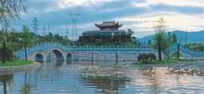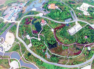 郴州市文化公園位于郴州高新區中央商務區,以園內名勝古跡鹿仙庵為核心對整個鹿仙山進行開發建設,是集文化、娛樂、休閑、宣傳展覽、園林綠化、游樂活動于一體的綜合性文化公園,彰顯了郴州“林邑之城休閑之都”的地域文化氣息。公園總面積22萬m2,其中生態綠化面積13萬m2,水系面積3萬m2,廣場、綠蔭停車場等面積6萬m2,投資約3億元。公園利用原有水系分布,取中國龍之”圖騰"和“天人合一”之寓意,在鹿仙庵南側以中國風水思想“負陰抱陽”構成龍形水系景觀。