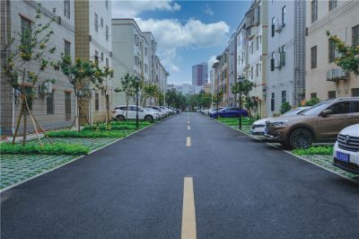 整治面積45036m2,主要為道路工程、裝飾工程、景觀工程、電氣工程。具體有:拆除原有路面、瀝青混凝土路面結構層、人行道和停車場鋪設、雨水檢查井加固提升、交通標注規劃線和交通標志牌、37棟建筑物首層外墻翻新、花崗巖人行道、卵石路行人路面、橡膠地墊、喬木灌木地被種植;電氣工程主要工作內容包括:庭院燈、半高桿路燈、電子宣傳欄、視頻監控等。