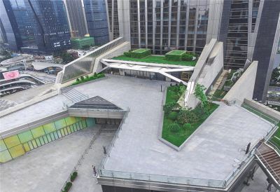 總景觀面積約30700m2。工程內(nèi)容主要為地面鋪裝、屋頂綠化、支撐器石材架空地板鋪裝、座墻裝飾、垂直綠化、水景噴泉、花崗巖踏步石材安裝、菠蘿格木平臺安裝、立體墻面干掛石材裝飾、墻體立面石材干掛、水景、照明工程、機電工程、噴灌系統(tǒng)等。