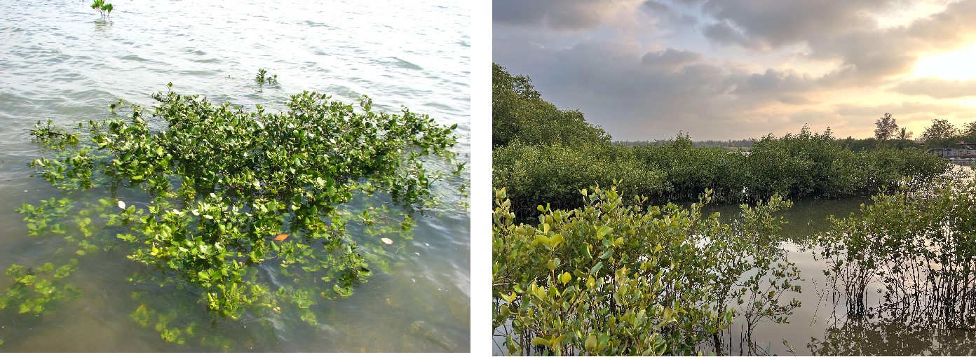 Shrubs or small trees. Leathery leaf blades oval, apex retuse, with salt glands on the surface, often encrusted with salt crystals. Flowers umbel ,white ,cone-like when in full bloom. Crytopetalous, with a small, curved embryonic axis like a crescent, also known as the "candle fruit". Highly resistant to flooding, mostly grow in low and medium tidal zones.