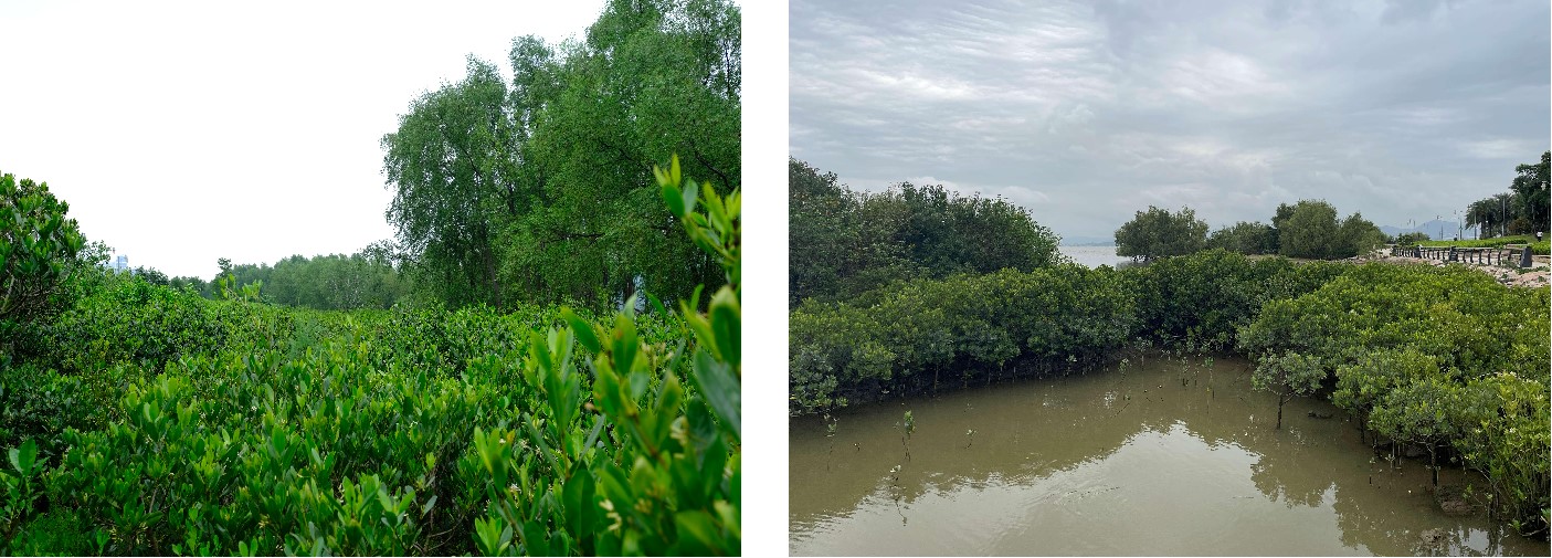 Tree, bark dark gray. The leaves are thick and smooth, the flowers are solitary red, with purple bell calyx tube; viviparous, the hypocotyl is dark green, the stubby wall is straight, and the tip turns red when mature. It has developed geniculate respiratory roots and is mostly scattered in the continental margin area at high tide level.