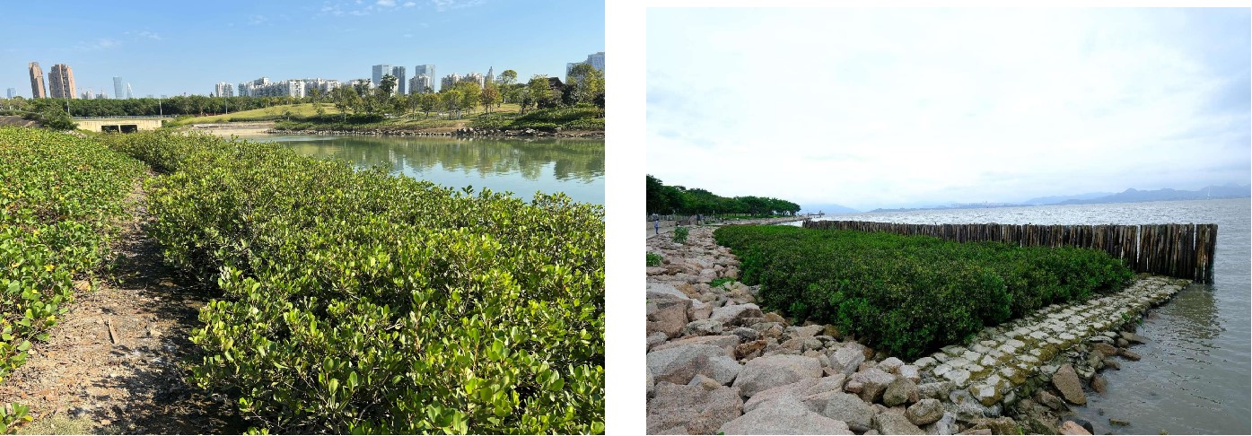 又名海欖雌,喬木或灌木,因枝干灰白色而得名“白骨壤”。葉革質有光澤,幾乎沒有葉柄,上下兩面都具有鹽腺。花細小,黃色;隱胎生,果近球狀,可食用。指狀呼吸根最發達,常生于灘涂前緣,為深圳本地先鋒種。