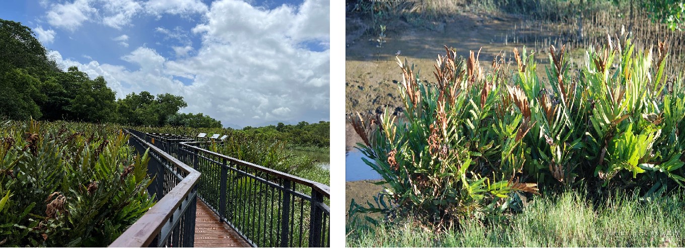 Perennial mangrove fern, up to 2m tall. Mature fronds bear brown sporangia on the upper parts. Highly adaptable, fast-growing,mostly grow in moderately saline hige-tide mangrove understories or shore mudflats.